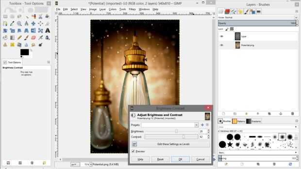 La siguiente parte es el contraste. Asegurándose de que su imagen original, no la capa de la viñeta, es seleccionado en el diálogo de capas, abra el menú de "Color" en la parte superior y lleve "Brightness/Contrast" el brillo incrementaron cerca de un tercio de la distancia y realmente arranca el contraste. En este punto, todo depende de ti. Esto es sólo artístico preferencia en este momento. Así que aquella Fiera artística dentro de la apoderarse. Tal vez.