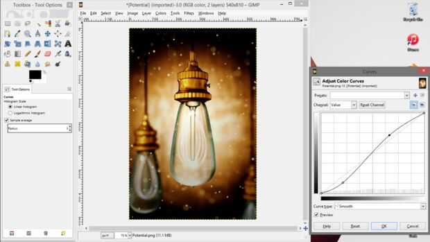 Un otro ajuste para el contraste que me gusta hacer es abrir la ventana de curvas en el menú de colores. Esto le permite agregar ajustes de contraste sutil, no uniforme. Suele disminuir la curva un poco por debajo de la media al principio y aumentar un poco el final. Otra vez, depende de su bestia artística dentro. :)