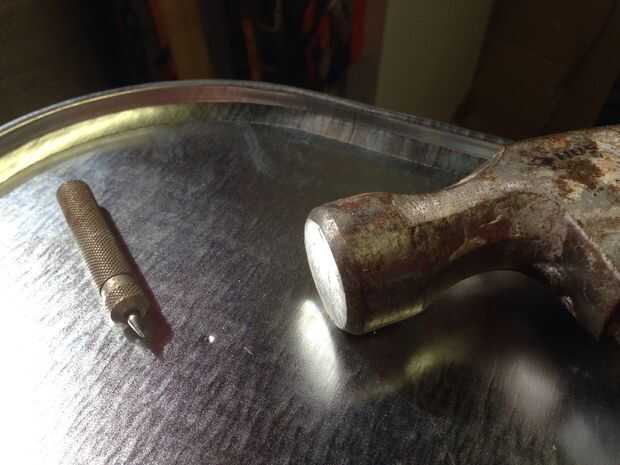 3. use el punzón para iniciar agujeros y perno punto de localización exacta para el pedacito de taladro.