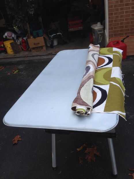 1. rollo de tejido después de que se haya decidido por su lay out.  De esta manera una vez que el pegamento está listo sólo puede desenrollarlo en.  (si tienes dos telas que va a hacer el primero de ellos, luego hacer el otro.