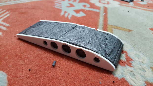 Si usted está construyendo un avión entrenador como yo, necesita un ángulo por su wings(Dihedral). Para un entrenador, grados 3-6 está muy bien, he creado un perfil de ángulo de 4 grados en tinkercad y hotglued entre las alas. Entonces conducto grabado una barra a la parte superior de las alas para que sea estable (no es necesario).