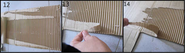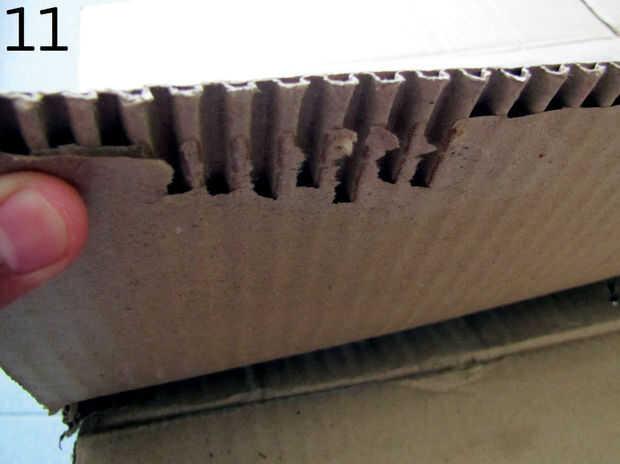 - Corte una pequeña aleta de caja de cartón corrugado utilizando tijera (funciona bien en paredes simples y dobles).