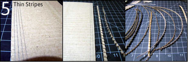 Además de todas estas herramientas, he tenido learend que es una buena idea cortar un montón de diferentes tipos de rayas de hojas acanaladas de antemano, esto definitivamente ayuda mucho mientras que usted diseño. La mayoría de los diseños que crea necesaria me corte tras tipos de tiras (ver imágenes sobre cómo):