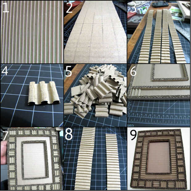 - Dibujar líneas de 1" de ancho en una hoja de cartón corrugada (imagen 2) cortar franjas de flautas horizontales (imagen 3).