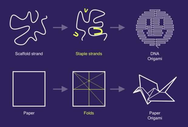 Origami de ADN es un método de usar ADN como material de construcción para crear dos y tres dimensiones estructuras a escala nanométrica. Este método consiste en tomar una larga hebra de ADN como material de base y el uso de muchos filamentos más pequeños "grapa" doblar el filamento largo en lugares específicos. Esta técnica fue publicada en 2006 por Paul Rothemund de W.K. en Caltech y desde entonces se ha convertido en un método popular y fácil de usar para la construcción de estructuras a escala nanométrica.