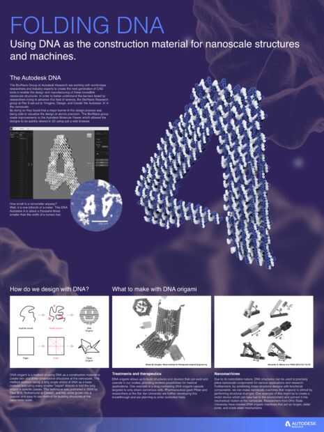 El grupo Bio/Nano de investigación de Autodesk están trabajando con investigadores de clase mundial y expertos de la industria para crear la próxima generación de herramientas CAD para el diseño y la fabricación de estas estructuras a nanoescala increíble. Para entender mejor las barreras que enfrentan los investigadores tratando de avanzar en este campo de la ciencia, el grupo de investigación Bio/Nano muelle 9 establecidos 'Imagine, diseño, y crear' Autodesk 'A' en la nanoescala.