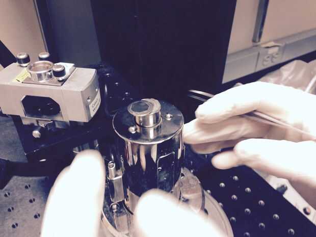 Primero teníamos que preparar la diapositiva para la AFM que está hecha de mica lisa, pulida. En primer lugar, con la herramienta mágica, cinta scotch, limpiar la superficie de la mica por pegar el adhesivo a la superficie de la mica y estafando con prontitud. La superficie era visible más brillante después de varios procesos Hendedoras. Sobre la superficie agregamos 20 uL de la solución compuesta por 2 uL de la papiroflexia en ADN ensamblada y el 18 uL del buffer.