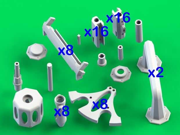 - El rotor se construye de ocho secciones idénticas, sujetadas con tornillos y tuercas.
