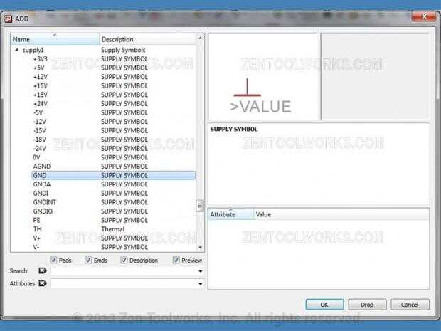 • Ahora queremos añadir algunos terrenos a los cátodos de los LED. Primero tenemos que obtener en el menú ADD.