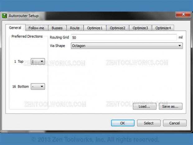 • Una vez que usted pulse el botón de autoroute que se obtendrá una muestra de todas las opciones que tiene. La versión gratuita de EAGLE sólo le permite hacer dos capas que está muy bien para este ejercicio. Usted debe abrir una ventana como esta: