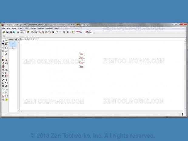 • Queremos seguir adelante y coloque cuatro resistencias abajo. Para ello, haga clic en cada clic coloca una copia de la parte que hemos seleccionado, en este caso nuestro resistor simple.