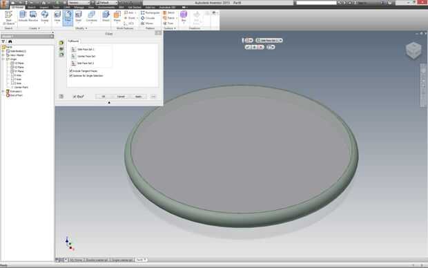Aplicar un completo redondos filete seleccionando frontal > lado > cara de nuevo y luego aplicar.