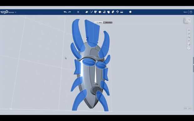 Mediante la herramienta polilínea y la herramienta Spline, dibujar las protuberancias en una mitad de la máscara. Utilice la herramienta extrusión para hacer cada perfil 3-dimensional.