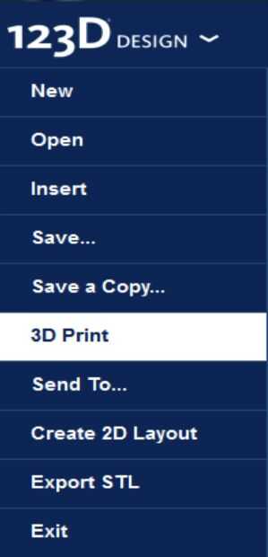 Una vez que una parte ha sido creada y está lista para la impresión puede seleccionar opción de impresión 3D en el menú 123D. Esto hará que aparezca el cuadro de diálogo de impresora 3D donde usted puede seleccionar su impresora y las opciones para la impresión. Después de configurar las opciones de impresora, se le dará la opción para guardar como un fichero .stl o enviar directamente al software Makerware para la impresión. Si su impresora no aparece en la impresión 3D Autodesk utilidad, usted puede todavía exportar a un archivo .stl directamente. Esto le permitirá usar cualquier software de que la impresora requiere. Esto puede hacerse seleccionando la opción de exportación de STL en el menú Diseño 123D.