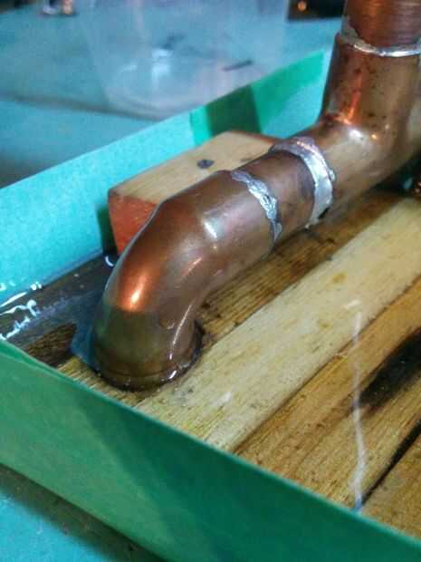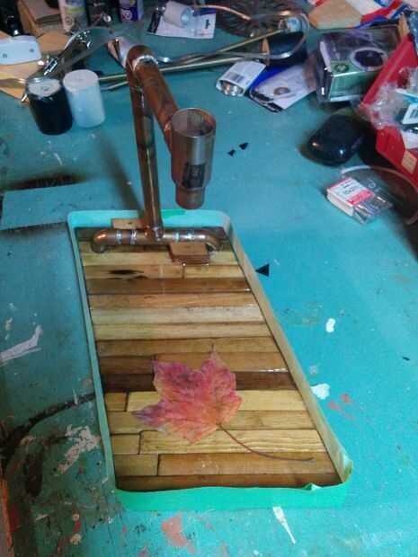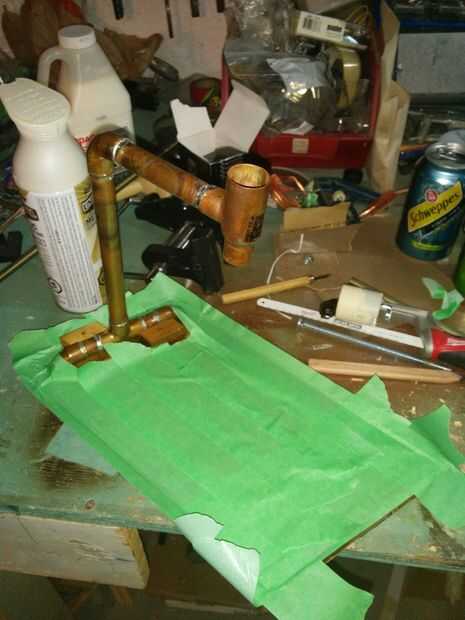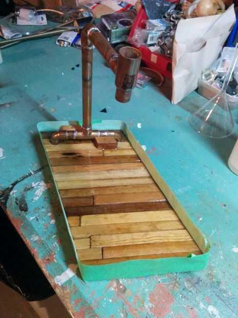 Después de todo esto pintado un "martillado cobre" pintura de aerosol en la base para tapar la Junta cheap-ish que mantiene unida a la base.