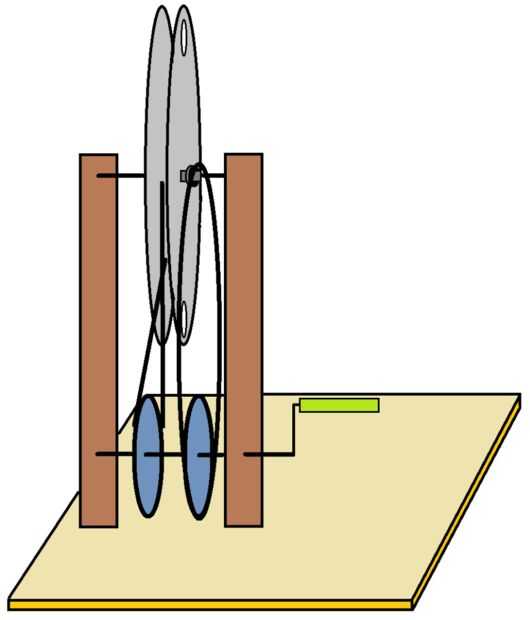 En el eje más bajo hay gran pullyes. En esto pullies son juntas tóricas. Estos orings wil montarse en el eje con las láminas, modo que roted roting el eje menor, el eje mayor. Nota que el eje mayor girará más que la más baja en axel ese uno oring convertirá en una hoja al revés.