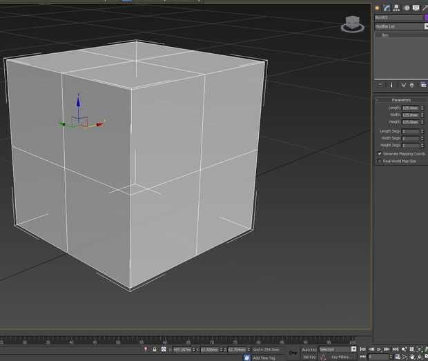 Al crear el cuadro, un panel a la derecha apareció con una sección que dice parámetros. En esta sección, puede modificar las dimensiones de la caja. Si perdiste esta sección, asegúrese de que tiene el cuadro seleccionado y haga clic en la ficha de modificador (segunda pestaña). A partir de ahí, he editado la longitud, anchura y altura de 125mm.