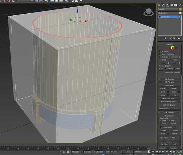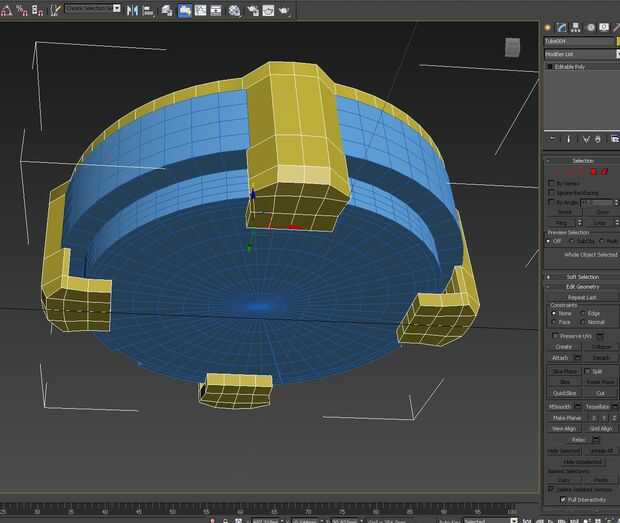 A continuación, puede sacar la forma de la sombra de la linterna. Lo hice seleccionando las caras en la parte superior y debajo de Editar polígonos, selecciona Extrude y sacó a la altura que yo quería.
