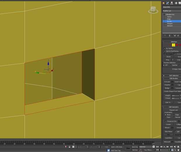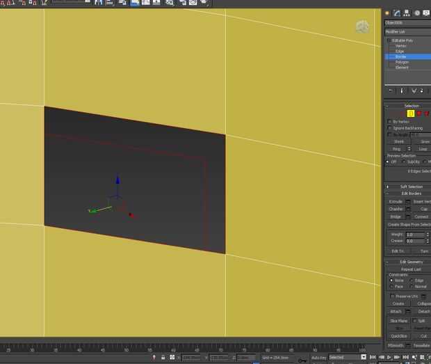 Con el objeto seleccionado, vaya a Editable Poly, seleccionar contorno. Seleccione los dos enfrente de los bordes y en fronteras de editar, seleccione Bridge y Ok. Crear tantos como quieras, he optado por una forma rectangular simple.