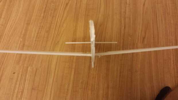 Una vez tuve el diseño terminado quise validar el diseño antes de poner el tiempo para construir uno de balsa. A esto redujo mi planes a media escala. Con este nuevo plan que hice una versión de ala de avión de cartón pluma. Comencé cortando a la vista lateral del fuselaje y ascensor. Entonces corte una ranura en el fuselaje de la cola se deslice en. Tenga en cuenta que la cola es montaje, es decir con el borde por debajo del borde de fuga. en un ángulo de ataque negativo. Para un avión de configuración convencional con una vela delante de la cola esto es fundamental para la estabilidad. Para unir las mitades del dos ala he pegado algunos pequeños trozos de alambre en el ala y deslizarse en la otra ala mitad. Luego puse el avión junto con cinta adhesiva y agrega una bola de arcilla a la nariz para conseguir el centro de gravedad en el lugar deseado.
