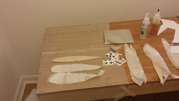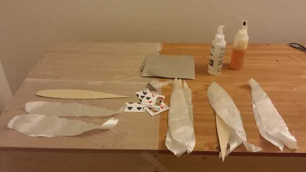 - Algo sobre las costillas, en mi caso era un pedazo de espuma. Luego coloque tanto peso como puedas en las costillas. Esto le ayudará a cumplir el la fibra de vidrio a la recta auxiliar, como exprimiendo cualquier exceso de resina.