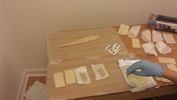 - A continuación corte la plys de 2 onzas de fibra de vidrio que se necesitarán para el sándwich laminado.