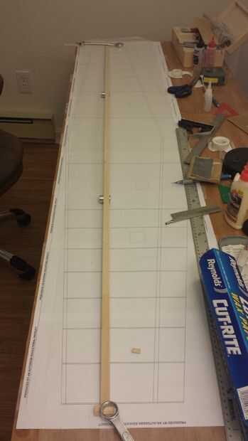 - Coloque la tapa del mástil superior boca abajo sobre el dibujo utilizando a espaciadores para sostenerlo a lo largo de su longitud y sobre todo en el centro.