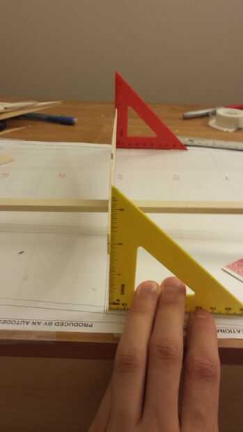 Pegando estos dos costillas en cada ala, ahora es posible alinear el ángulo de las costillas de giro sin necesidad de medir la altura de la mesa. T