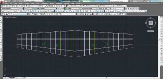 Ahora que se hace la tapa del mástil superior es posible siendo colocar las costillas de ala en el larguero para hacer el ala. Para hacer este proceso mucho más fácil elaborado un plan de ala simple usando autocad para construir. El dibujo incluye el mástil de ala, arrastre spar, subleading borde, borde de salida, así como la ubicación de cada costilla. Aunque no es la única manera de hacer esto, venció dibujar un plan a mano o medición como vas. Por la impresión el tamaño completo del plan ala tengo una impresión azul para la construcción, que hace construir un ala recta mucho más fácil.
