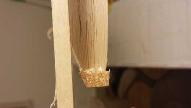 - Ahora que se une el borde sub, empezar talla (usando una navaja de afeitar o un plano de la maquinilla de afeitar) lo más cerca para que coincida con el contorno de las superficies superior e inferior del ala. No debe ser redondeado en el frente, más bien debería verse como un trapezoide.