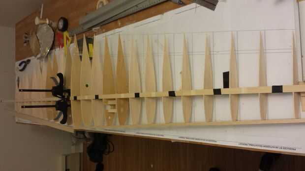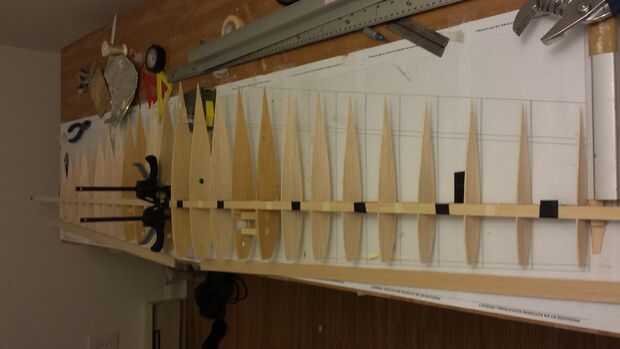 - Trabajo pegar conjuntos de costillas hasta cubre un lado del ala.