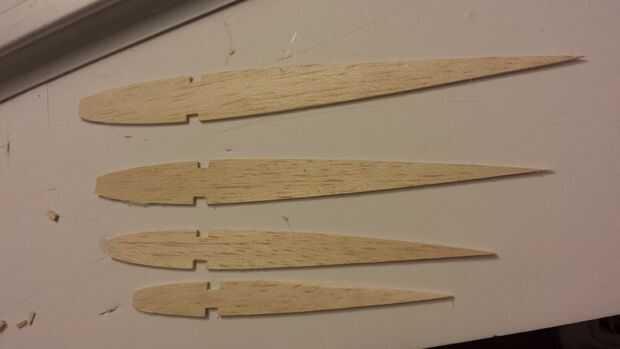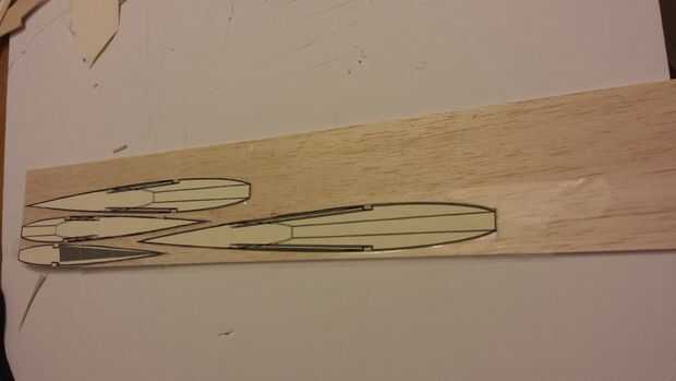 - Imprimir y usar cinta de doble cara para fijar las plantillas a la población de balsa 1/16 pulgadas.