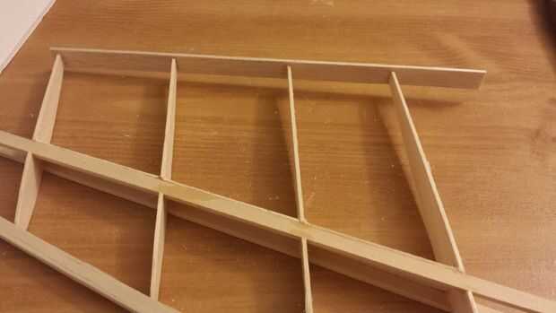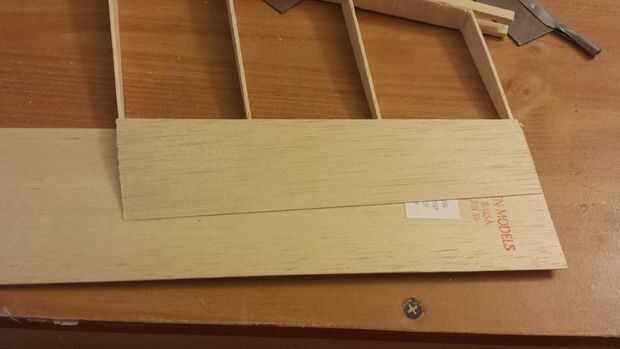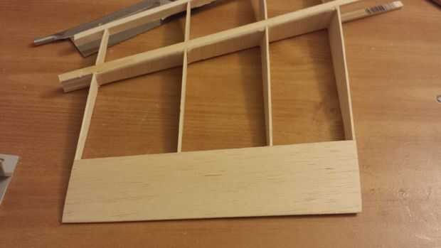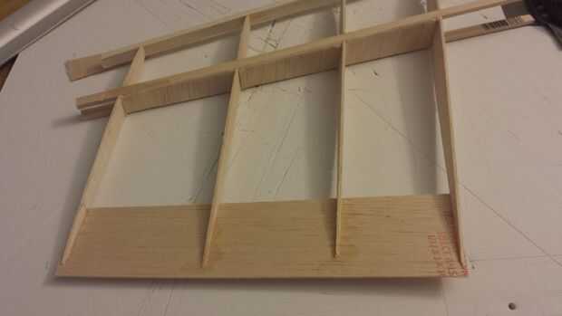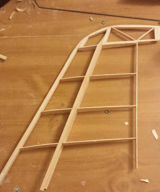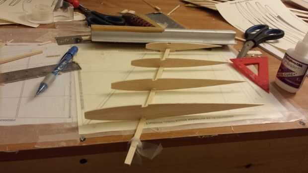 - La web de la corte se hace de balsa 1/16". Corte e instale como hace en el ala.