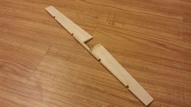 - Las dos secciones ahora deben estar Unidas con un estructural lleva sin embargo. Para lograr esto corte y lija en tres piezas de tilo que sería lo suficientemente grande como para llenar completamente el espacio entre la tapa del mástil superior e inferior. Estas piezas no sólo cambiar la web de la corte en esta sección pero también sirven para unificar a la derecha y ala izquierda.