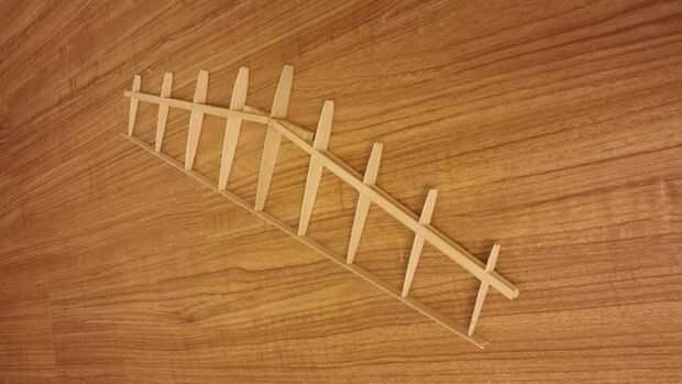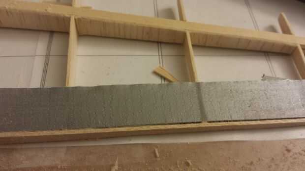 - Los extremos del ala se hacen de pedazos sólidos de 1/4" balsa apilados juntos para ser el espesor de la superficie.