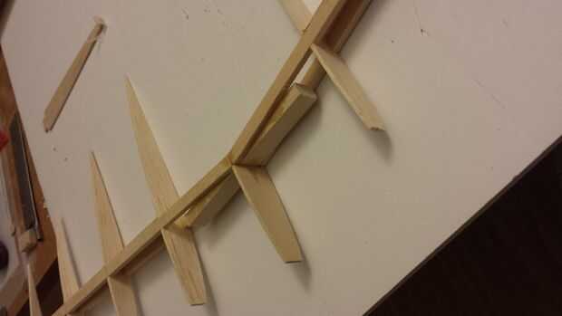 - El borde de ataque secundario es 1/4" densamente sobre tira de balsa de tamaño que puede pegar en las costillas con gruesa CA.