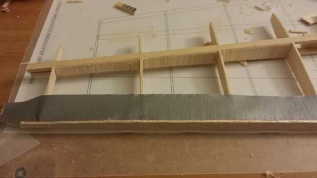 - La web de la corte se hace de balsa 1/16". Corte e instale como hace en el ala.