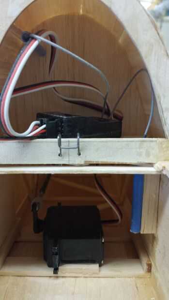 - Construir una plataforma de montaje como hecho para todos los servos en la sección de popa del fuselaje y el servo de epoxy en su lugar, asegurándose de alinear el brazo de control con la horn en el elevador.