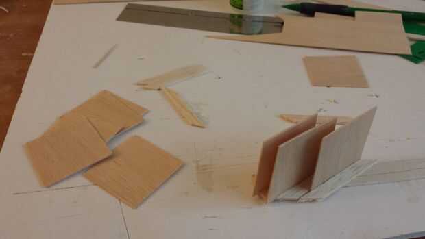 - Cortar los espaciadores aproximadamente de 1.5" de largo de 1/4 x 1/16 espesor balsa.