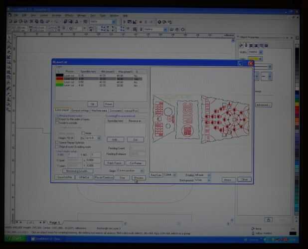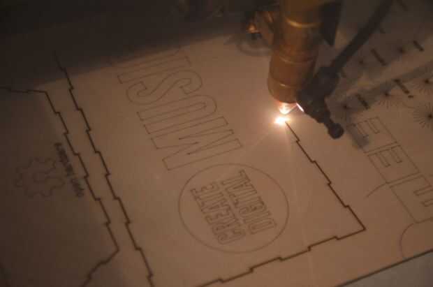 Antes de cortar los archivos, usted debe hacer algunas pruebas en la madera para determinar la intensidad adecuada y la velocidad. Esto es muy importante en las letras, ya que una línea demasiado fina serán ilegible desde la distancia, mientras que demasiado grosor de una línea hará las líneas fluyen sobre. Utilicé la misma configuración de las líneas y letras, pero para una próxima versión aumentaría la intensidad de las líneas, para que sean un poco más pronunciado. Los archivos pdf muestran las líneas de corte en rojo, mientras que las líneas grabadas son de color negras