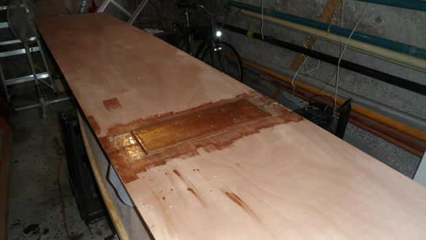 Ahora que he hecho bastantes errores en mi primera ama de vidrio y espuma (uno de ellos estaba usando pintura disolvente limpieza: no utilice pintura diluyente para limpia la espuma--que le susurro y derretir la espuma! TUVE HORAS DE REPARACIÓN TRABAJO QUE HACER DESPUÉS DE ESO. DESNATURALIZADO ALCOHOL parece a THOUGH OK BE), estoy listo para instalar el fondo de espuma en el casco principal del barco.