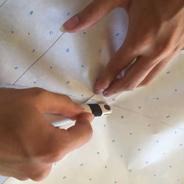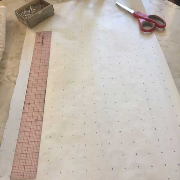 1. Extienda su cortina plana como sea posible, ya sea bajo o sobre el papel de patrón.