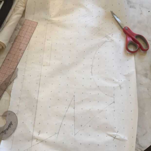 4. calibrar tus dardos y capuchas por plegamiento en el papel y, mediante una ruedecilla, marque donde caen el dobladillo y el hombro. Al abrir el doblez, debe tener una línea de traza en la que el tejido se sentará directamente.