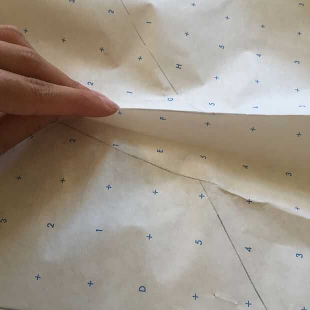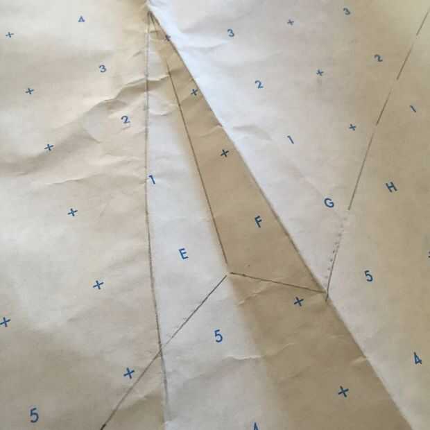6. la línea del hombro se mezclan en un triángulo, más allá de la línea del cuello. Esto se dobla en el escote y servir como una orientación del uno mismo. Más adelante podemos recortar para acomodar el láser de corte de patrones.