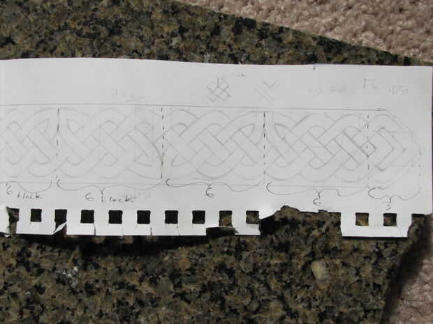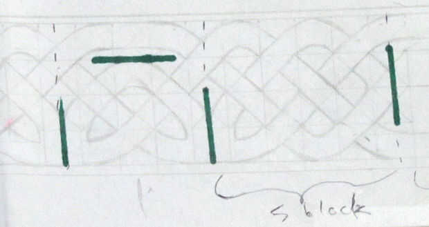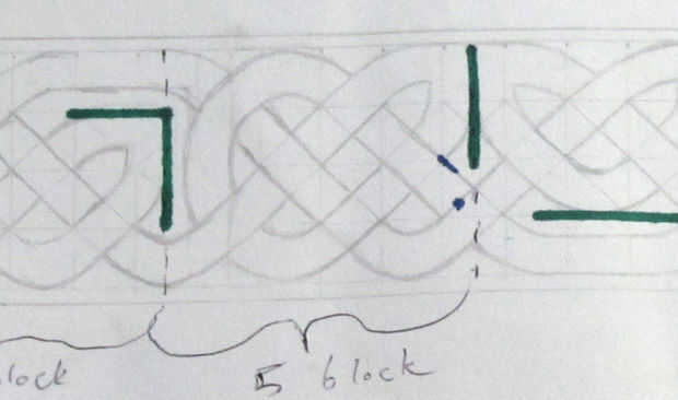 3) alteraciones en el diseño del nudo pueden hacerse fácilmente colocando una línea en la red (a través de la media de cuadrados grises en pdf red). La línea debe ser 2 plazas gris alto y puede ser sesgada superior, media o inferior (véase verde líneas en la mía). También se puede hacer una línea horizontal (estas van en la línea gris pdf)