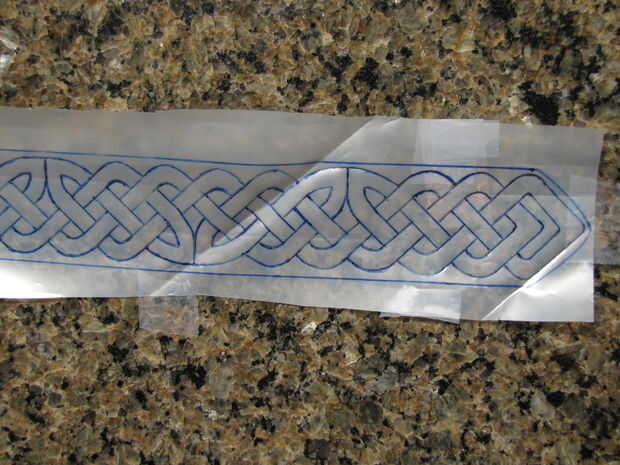 Finalizar el patrónTrace el patrón con Sharpie en mylar. Utilizar el material de cuero de Tandy.