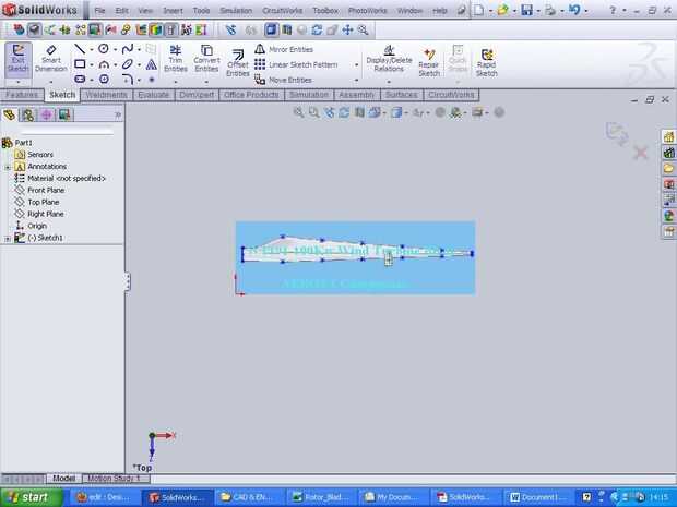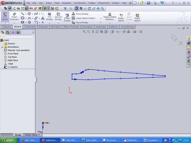 Ahora usando líneas, arcos o splines trazan sobre el exterior de la imagen usando los puntos como las articulaciones, luego eliminar la imagen que ha insertado para revelar el bosquejo de contorno de la hoja, hacer esto en el panel lateral.