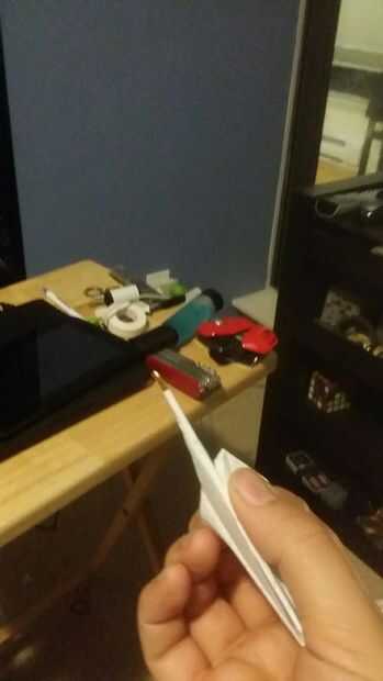 Probé diferentes tipos de dobleces de origami y finalmente ocurrió lo que pensé que era un simple pero eficaz plegamiento acción. Para conseguir una sensación para el mecanismo, graba solo un cartucho de la pluma al papel. Esto me dio una buena sensación para el tamaño de la pluma y cómo siente en la mano. El mecanismo pasó a encajar en mi requisitos de tamaño y forma, por lo que las cosas estaban empezando a reunirse.