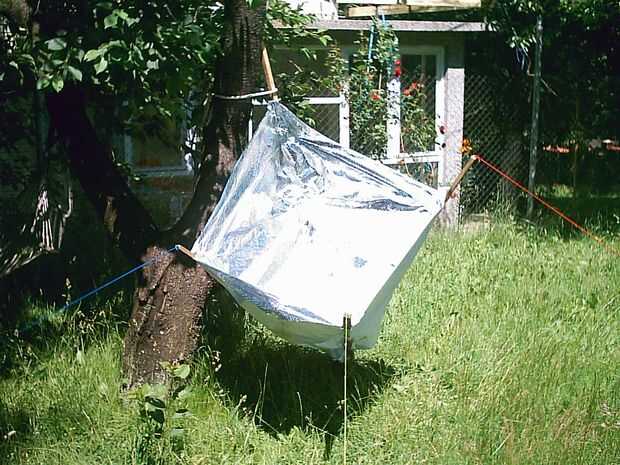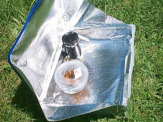 Es fácil de cocinar con la luz solar concentrada. Debe sin embargo llevar sol gafas o puede utilizar una máscara de papel con dos orificios para protegerse de la luz fuerte del sol.