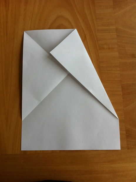 Ahora, doble la esquina superior derecha hacia abajo para que el papel es a lo largo del pliegue que su doble a la izquierda. Luego hacer lo mismo con el otro lado.